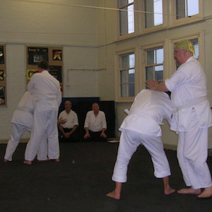 On Thursday the adult grading featured the return of Bob Withers, who presented thoughts on controlling uke through the strategy of creating an expectation of collision that never actually happens.